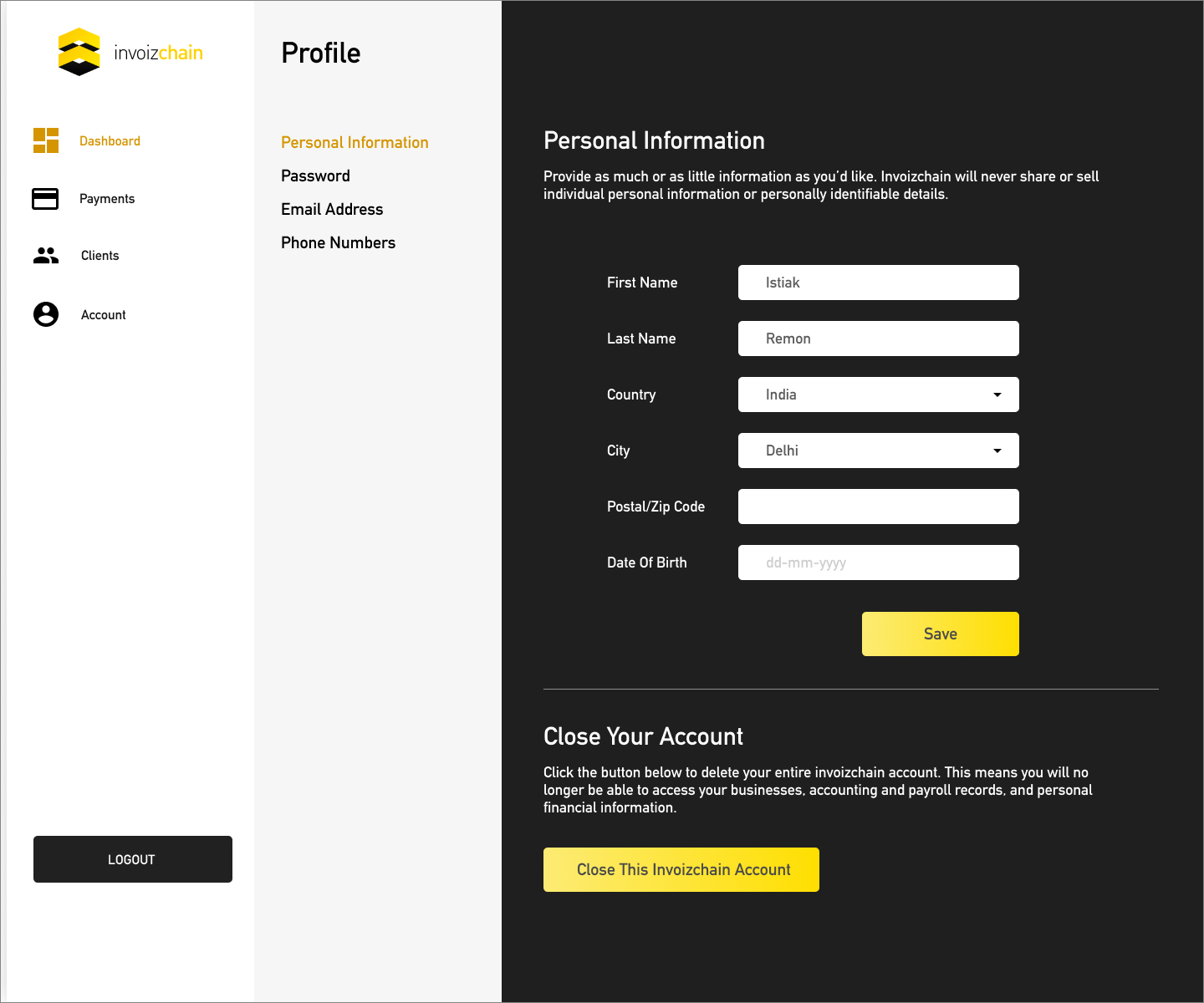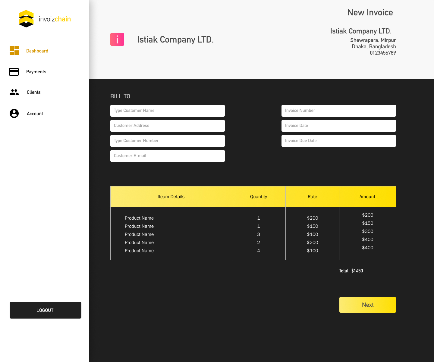 Dribbble Github Linkedin Resume DesignerDhananjay1@gmail.comWe opted in to a series of Invoizchain flow that would allow users to set up payments in advance and create recurring series. For this to be accomplished, I needed to rethink the flow architecture to allow for this new functionality.